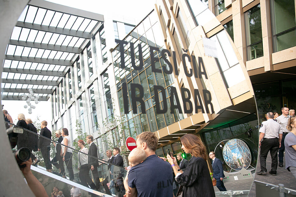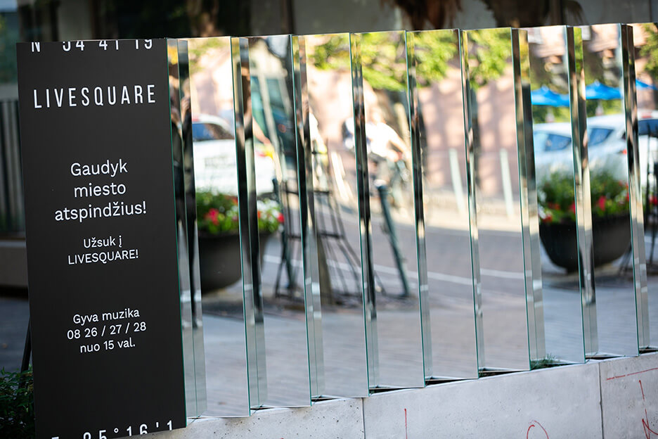 Naujo „Live square“ komplekso pristatymas visuomenei truko 4 dienas, per kurias miesto svečiams buvo organizuojamos nemokamos ekskursijos po kompleksą bei netikėti muzikiniai jaunųjų talentų bei tikrų scenos profesionalų pasirodymai. Viso komplekso erdves papuošė unikalios, erdvei pritaikytos ir specialiai jai sukurtos, interaktyvios veidrodinės instaliacijos. Atidarymo savaitę vainikavo uždaras VIP svečių renginys su specialiai šiam vakarui sukurto muzikinio performanso premjera bei furšetas ant pastato stogo.