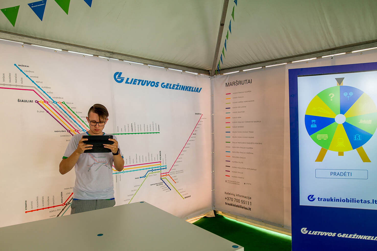 – Interaktyvus laimės ratas. Suprogramuotas žaidimas sėkmingai dalyvauja įvairiuose parodose, miestų šventėse ar vidinėse įmonės šventėse. Priklausomai nuo šventės tematikos laimės rate atnaujiname klausimai apie įmonę bei traukinius Lietuvoje, o laimės rato sukėjai vienu ekrano prilietimu išsuka sau laimingą klausimą.