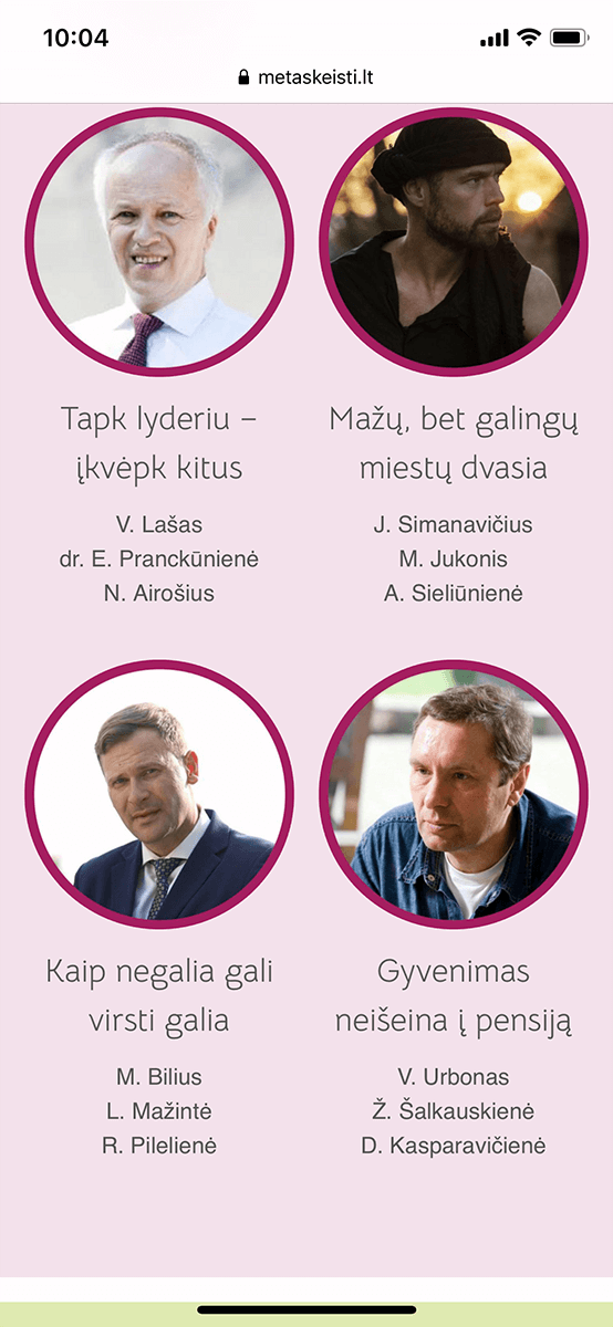 Projekto metu buvo sukurta 10 tinklalaidžių, kuriuose vedėjas Marijonas Mikutavičius kalbino pašnekovus, žinomus Lietuvos žmones, įgyvendinančius socialines iniciatyvas. Tinkalaidės buvo publikuojamos specialiai projektui sukurtame internetiniame puslapyje, portale 15min.lt, Spotify bei socialiniame tinkle „Facebook“. Atitinkamomis temomis inicijuotos laidos Žinių radijuje.